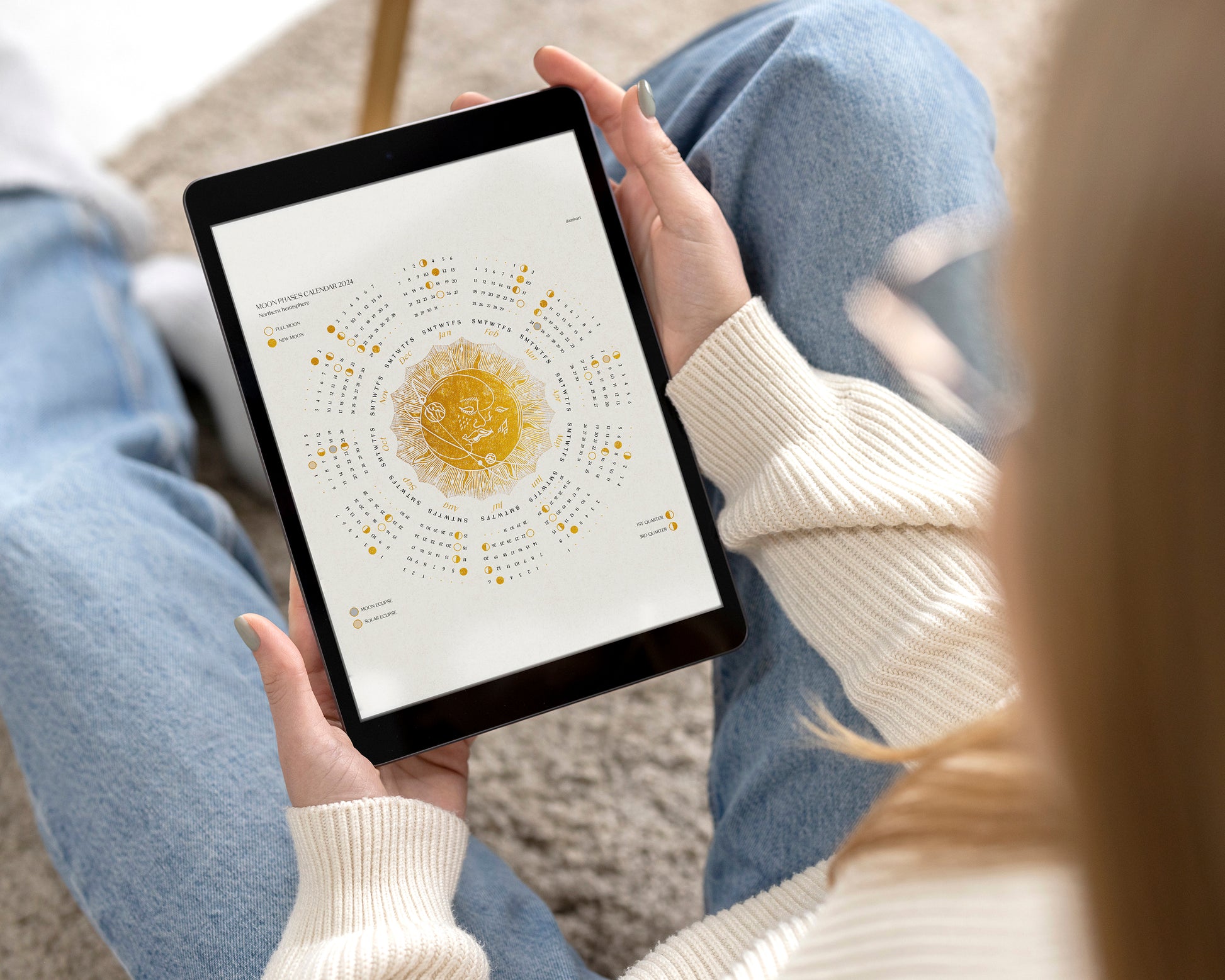 Printable 2024 lunar calendar Gold kiss moon and sun Desktop